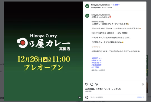 【追記】Instagramより投稿によると、12月26日にプレオープン、1月5日からグランドオ・・・